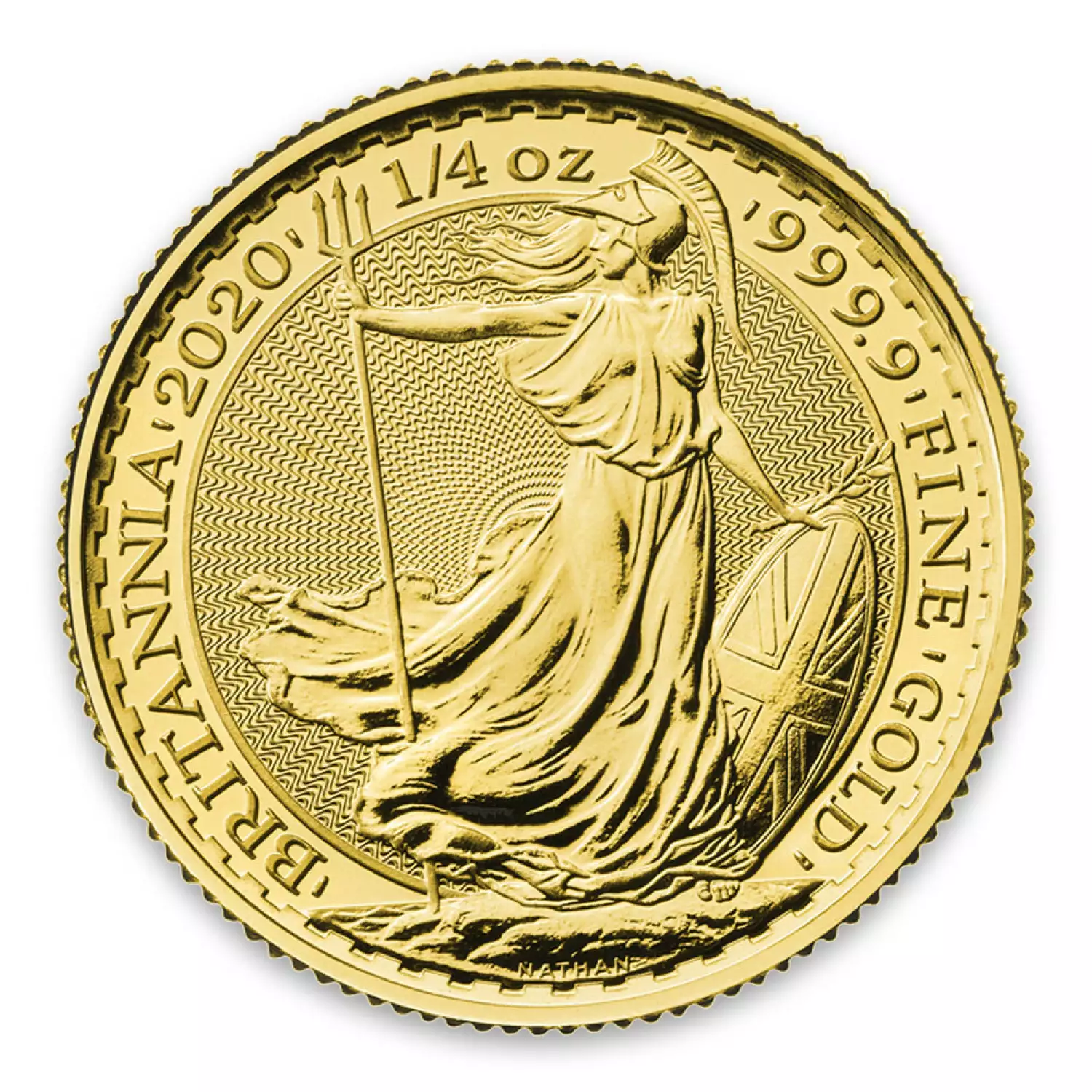 The British Gold Britannia continues to provide beauty and reliability. The 2020 1/4oz British Gold Britannia is one of the most popular investment coins in the world. Each 2020 1/4oz British Gold Britannia contains 0.25 troy ounce of .9999 fine gold. The reverse, designed by Philip Nathan has never changed since the first Britannia bullion coin in 1987. The Britannia has been a symbol through out the history and it’s first appeareance on the Roman coins is dating back over 2000 years ago.