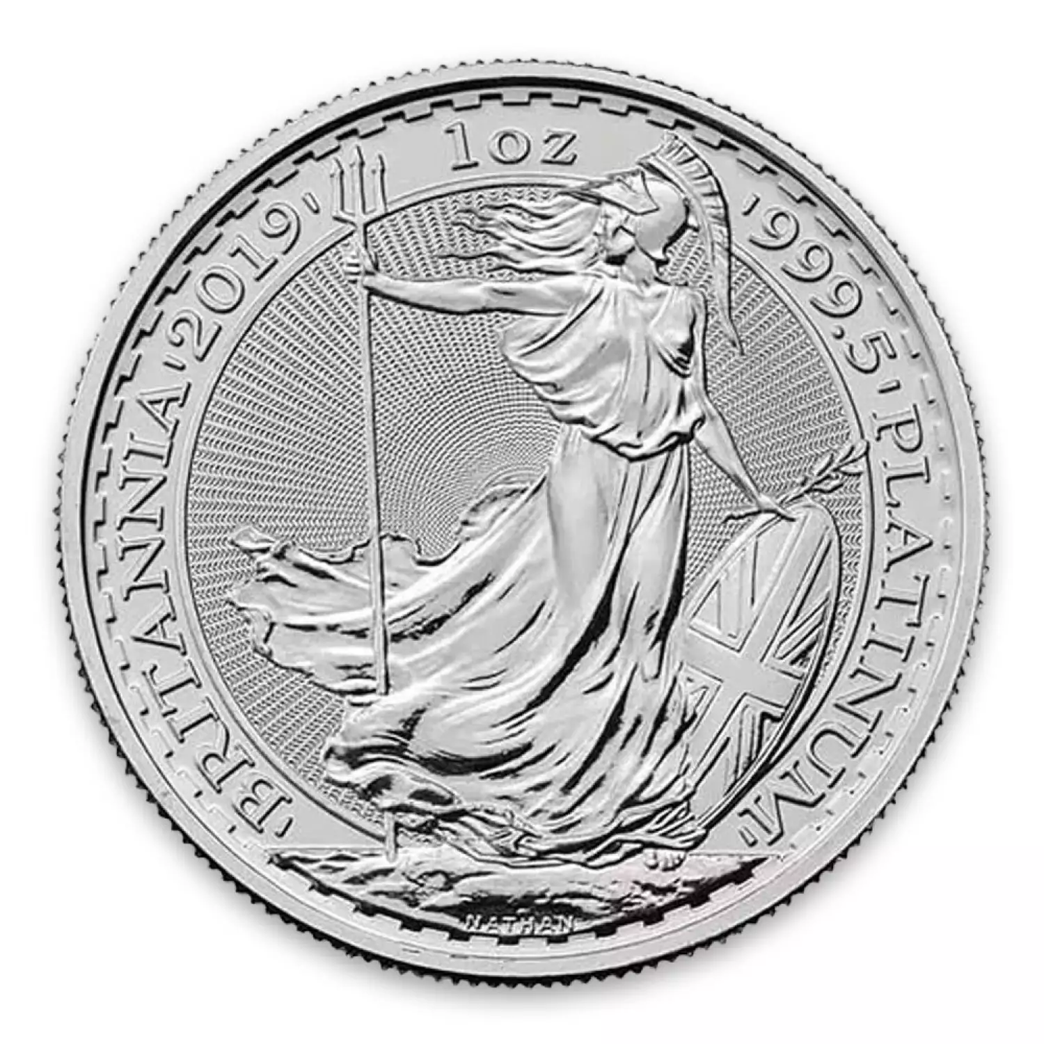 The 2019 1oz British Platinum Britannia is the newest annual release of the Britannia Platinum coins and is composed of 1 oz of 999.5 fine platinum. The obverse of the coin features Effigy of Her Majesty Queen Elizabeth II. The reverse depicts the image of Britannia, guardian of Britain. These striking platinum coins appeal to both investors and collectors.