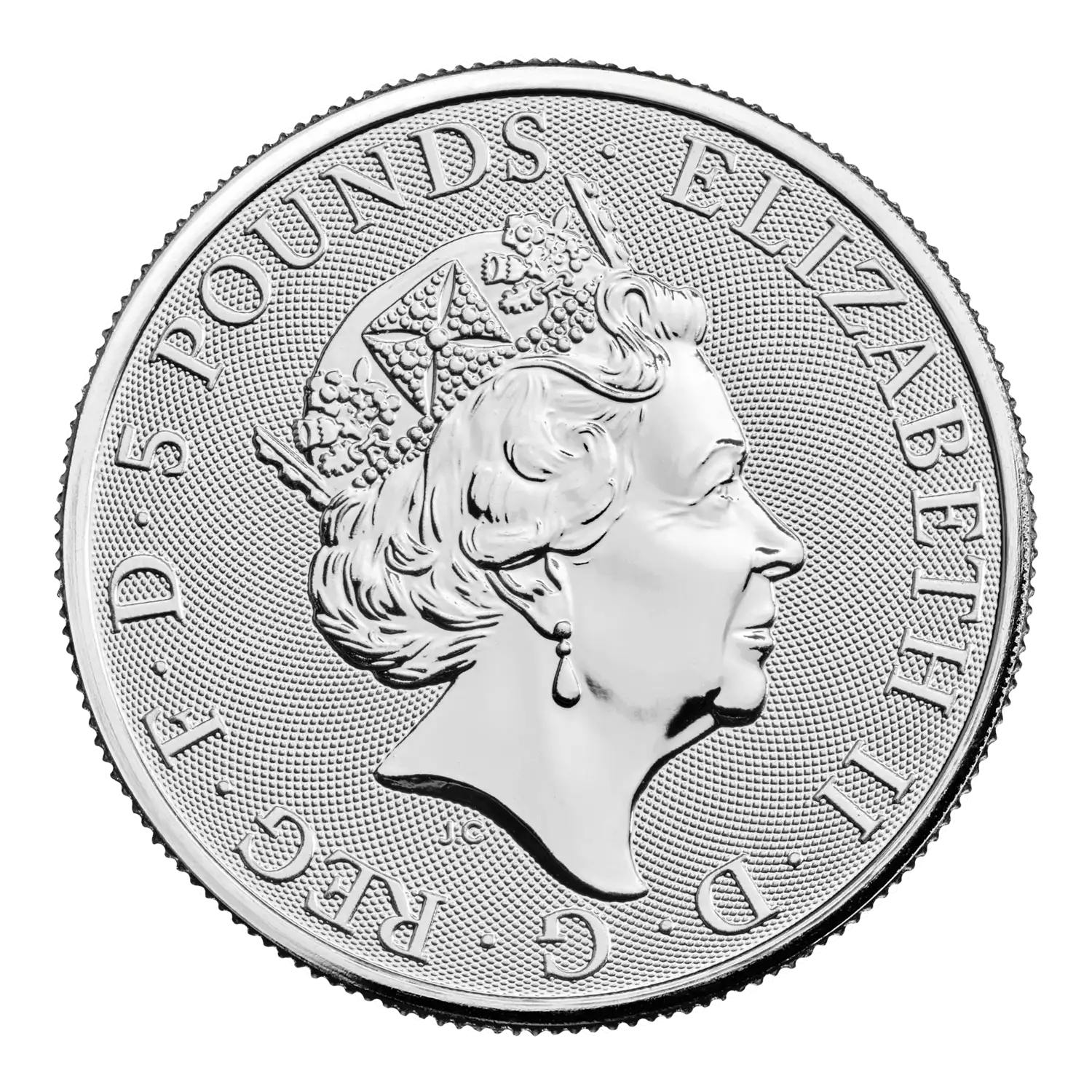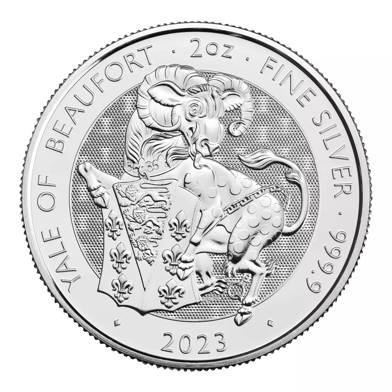 David Lawrence has captured the mythical yale on the reverse of the coin with a chainmail surface animation background texture providing additional security. The obverse of the coin features the fifth definitive coinage portrait of Her Majesty The Queen by Jody Clark.
