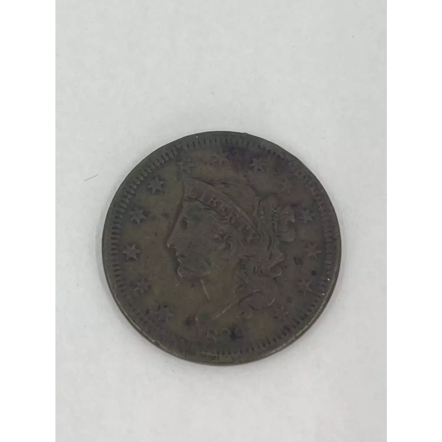 1839 P Liberty Large One Cent Coin is in FINE condition