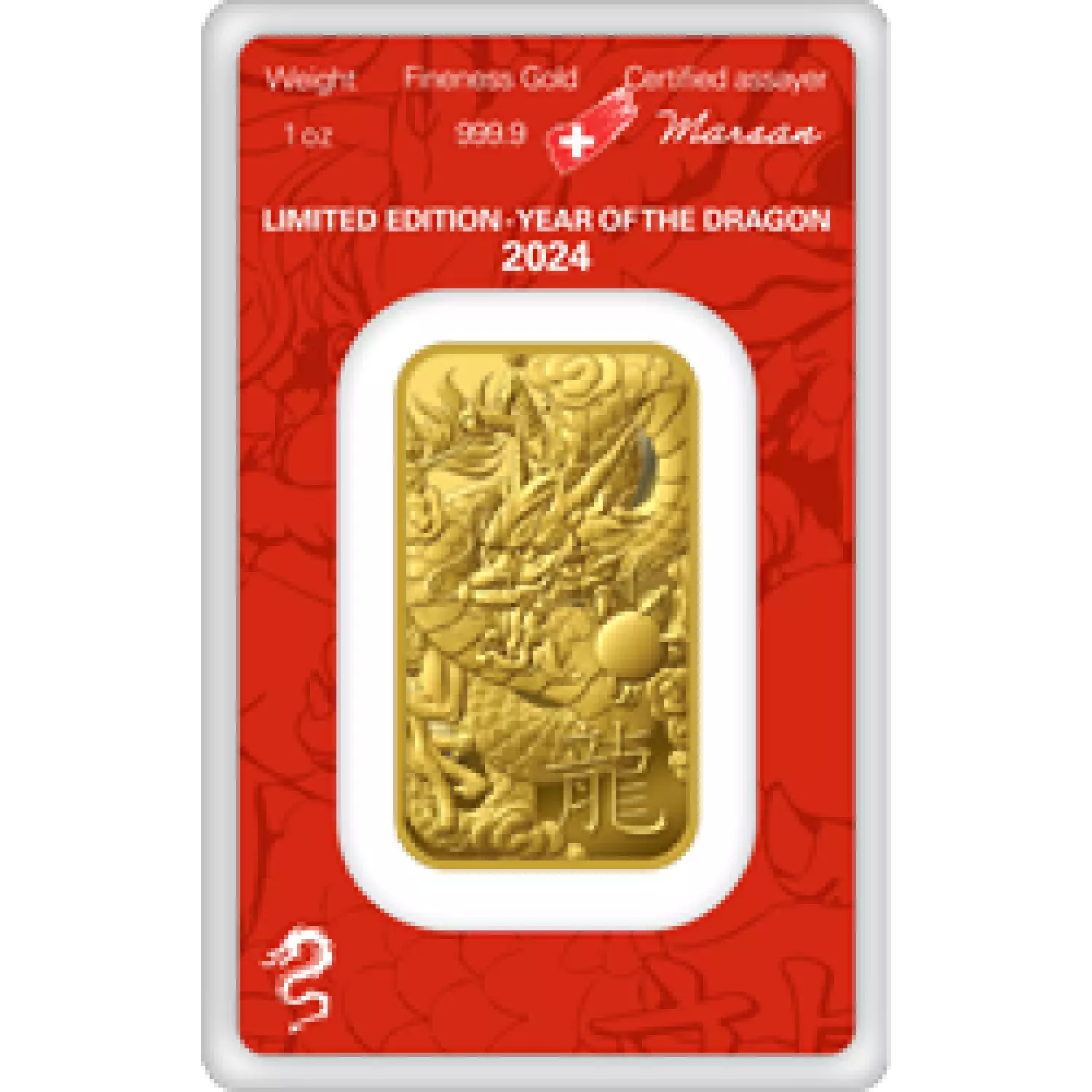 Weight: The Gold Dragon Bar is 1 troy ounce (oz) weight.